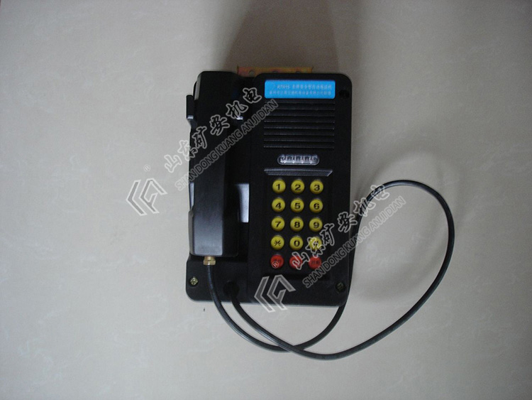 该电话为壁挂式安装,方便携带,设计新颖,外壳采用防静电材料制作,防水、防尘、防腐蚀,防护等级达IP65,适用于极为恶劣的环境,键盘为全密封带夜光轻触按键,铃流呼叫声光显示,并设有紧急呼叫、挂断和重拨键,在没有光源的环境中仍可正常工作。设有通话距离增益调节开关,可根据话机与调度总机的距离,调节送受话增益,适用于煤矿井下通话距离长、线路绝缘不好的情况,通讯距离远